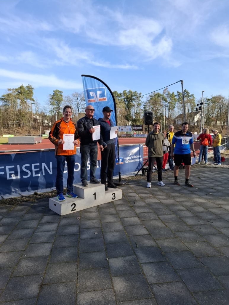 Und mit Hans ging es auch schon los beim Lauf über 4100 Meter (1 Runde + 1 Runde im Stadion) über eine kleine Rampe und durch den Wald. Die Bedingungen waren perfekt und der Boden griffig. Kein Schlamm oder Eis. So konnte Hans in 20:53,8 Minuten ins Ziel einlaufen und wurde damit erster in der AK75. Martin Moder lief um 14:00 Uhr den Hauptlauf mit 7800 Metern. Bei diesem mussten 2 Runden gelaufen werden. Hier konnte er den 2ten Platz in der AK40 machen mit 32:19,9 Minuten. Der Sieger war leider Duschen so dass der Vater den ersten Platz einnahm. Anschließend gab es noch Kaffee und Kuchen und wir genossen die schöne Sonne, am wunderschönen Samstag. Martin verriet dabei, dass die Großeltern mit dem 2-jährigen Vater aus Sudetendeutschland in offenen Güterzügen flüchteten und in Waldkraiburg Baracken aufbauen durften. 3 Millionen Flüchtlinge insgesamt und 270 Tausend starben bei der Vertreibung. Vor dem heutigen Kriegs Geschehen in aller Welt sollten wir uns dies vergegenwärtigen und uns für den Frieden einsetzen.